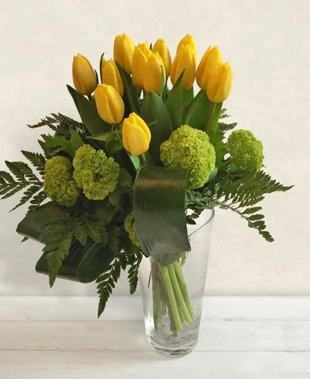 Tulipany to jedne z najpiękniejszych kwiatów, które wywołują u każdego uśmiech i szczęście. Kojarzą nam się z wiosną, słońcem i rozkwitającym światem natury. Kolejna z naszych propozycji to bukiet żółtych tulipanów uzupełnionych zielenią dekoracyjną. Taki prezent to propozycja idealna dla każdego kto pragnie podarować komuś nieco radości i dobrego samopoczucia nawet w zimowe dni. Wysyłając takie kwiaty do Włoch sprawisz komuś cudowną niespodziankę, która będzie zapamiętana na długo.